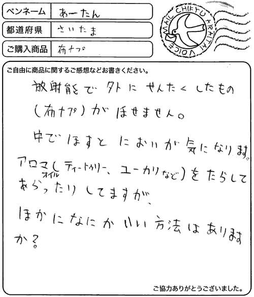 放射能で外にせんたくしたもの(布ナプ)がほせません。