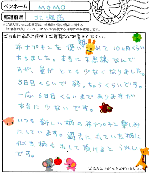 布ナプキンを使い始めて10ヶ月くらいたちました。