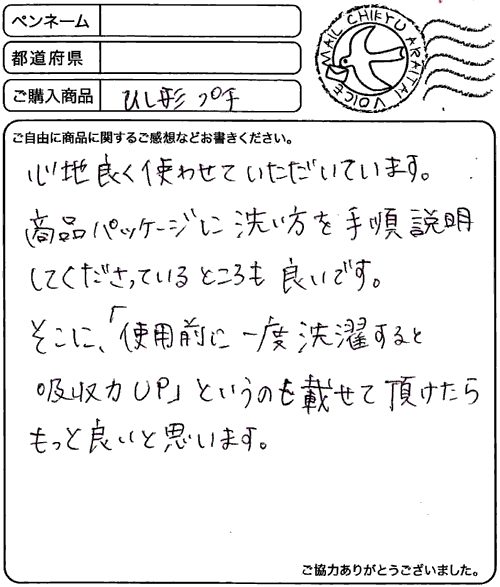 良いです。そこに、「使用前に一度洗濯すると吸収力UP」