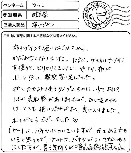 布ナプキンを使いはじめてから、かぶれなくなりました。