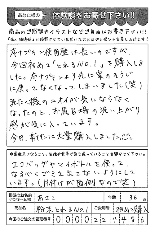 “地球洗い隊”は地球をきれいにするバイオの洗剤「とれるNO.1」を使った、エコでスローな心地よい暮らしを提案する情報サイトです。ここではお客様が当店のアイテムを使って、掃除・洗濯・ペット関連・除菌&抗菌など、実際にご使用いただいた感想を紹介しています。