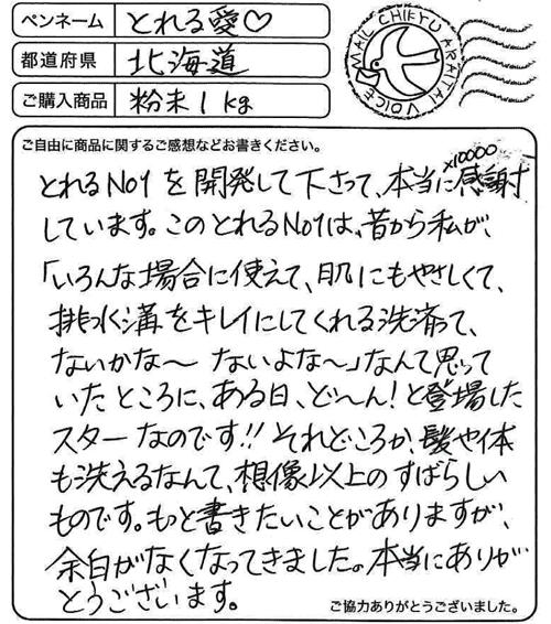粉末とれるの感想をアップしていただきましたっ。